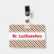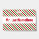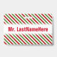 Red, White & Green Striped Pattern + Teacher Name ID Badge
