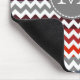 Red White Grey Chevron Zigzag Monogram Mouse Pad