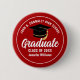 This modern red and white custom senior graduate button features classy white typography of your high school or college name for the class of 2026. Customize with your graduating year under the chic black handwritten script and black grad cap for a great personalized graduation name tag for a party or alumni homecoming event.