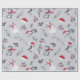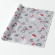 Red & White Holiday Penguins & Snowmen Silver Wrapping Paper