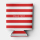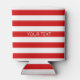 Red White Horizontal Preppy Stripe Name Monogram Can Cooler