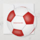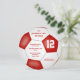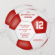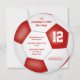 This sporty soccer themed birthday party invitation features a soccer ball graphic, with the soccer ball's typically black panels recolored red, upon which you can customise all the party details - by katz_d_zynes