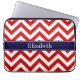 Red White LG Chevron Navy Blue Name Monogram Laptop Sleeve
