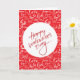 Celebrate your favorite person with this vibrant and modern Valentine's Day card. Featuring a bold red background covered in a playful, multi-font "Love" typography pattern, this design centers on a clean white circle with "Happy Valentine's Day" written in an expressive, hand-drawn brush script. The customizable heartfelt interior message—"Life is better because you're in it"—is sure to make them smile. Personalize the inside message to add your own special memories or names for a truly custom touch. Whether it’s for a long-term partner, a new crush, or a best friend, this card makes a bold statement of affection.