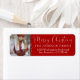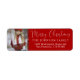 Elegant and classy return labels for Merry Christmas (Xmas) Holiday greeting cards / envelopes. Add family photo or other picture. Red glitter. Modern RED letters for family name and address. Letter colour and font can be changed.