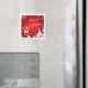 This inexpensive and festive red and white "Merry Christmas" magnet has a male deer with antlers adorned with holly and berries, red and white gifts with ribbons, snowflakes, stars, and a variety of Christmas trees on a bright red background with a snowy border on it. It would look great on your fridge, or send them out with your Christmas cards as a nice little nominal gift for your loved ones.