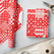 Red and White Mixed Patterns Patchwork Design of 16 Different Design illustration of Fleur-de-lis, crowns, hearts, Polka Dots, Greek key, Moon stars, Houndstooth, Trees, Harlequin, Stripes, Check, umbrella, anchor, Chevron, blob and flower floral illustration Designs.