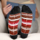 Socks featuring a striped pattern in white and reds. You can scale, drag and rotate the pattern if you like. Beautiful for Christmas and suitable for wearing at other times.