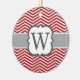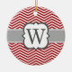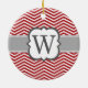 Red White Monogram Letter W Chevron Ceramic Ornament