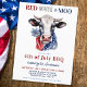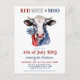Charming Design: Each invitation showcases a delightful illustration of a cute dairy cow adorned with a red, white, and blue motif, bringing together the essence of farm life and national pride.