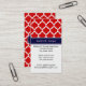 Red White Moroccan #5 Navy Blue Name Monogram Business Card