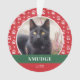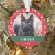 Pet ornament for Christmas with your pet's photo inside a red frame with a paw print pattern. Add your pet's name and the year.