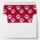 This holiday envelope features a red and white paw print pattern on the inside, white on the outside.