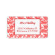 Custom address labels with script and italic letters in red on a holiday background pattern of swirly peppermint candies.