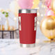A red background. Personalise and add your photo, monogram initials and full name. White text.