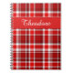 This red and white plaid spiral notebook has a repeating checked / tartan pattern that's lightly textured. It's a bright, stylish plaid pattern that will make your notebook stand out. Easily personalise by using the template to add your name in white cursive on the red strip.