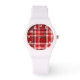 This red and white plaid design has a repeating checked / tartan pattern that's lightly textured. It's a bright, stylish plaid pattern.