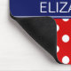 Red and White Polka Dots Pattern #2, Navy Blue Ribbon Name Monogram Label
