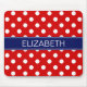Red White Polka Dots #2 Navy Name Monogram Mouse Pad