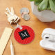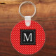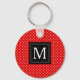 Red White Polka Dots Pattern Black Monogram Design Key Ring