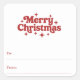White background, and a red text. A to/from tag. space for you to write by hand. Text: Merry Christmas with a retro 70's style font.