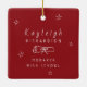 Celebrate a graduation with this charming and customisable ornament! Featuring a classic red-and-white retro hand-drawn theme, this keepsake is adorned with whimsical school-related doodles and handwritten style text. Double-sided design. Add a photo and year to the front; add a name and school to the back. Whether it’s hanging on a tree, displayed on a shelf, or given as a gift, this ornament will always remind them of their academic milestone and the hard work that led to it. © Kimbellished, LLC