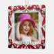 This is a festive, Christmas and Holiday ornament Your photo is framed with red, white ribbons and bows. Perfect for that photo for our Christmas tree.