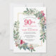 Red White Rose Floral Holly 90th Birthday Party Invitation