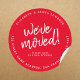 Red White Rustic Script We've Moved New Address Classic Round Sticker