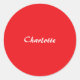 Red White Script Elegant Minimalist Modern Name Classic Round Sticker