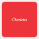 Red White Script Elegant Minimalist Modern Name Square Sticker