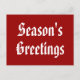 This holiday postcard features a cheerful text design: Season's Greetings. Customise the back with your own personal message. Perfect for sending out business holiday mailings.