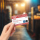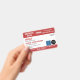 Horizontal service dog ID badge in red and white with room for two logos. Add name, title, and registration number. Add the handler's name and contact information too.