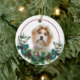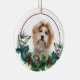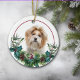 Red White Shih Tzu Dog Evergreen Wreath Ceramic Ornament