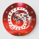 RED WHITE SNAKE DRAGON WITH PINK GEMSTONES LARGE CLOCK