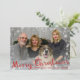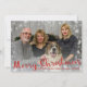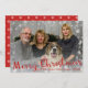 Custom Christmas family photo card with Merry Christmas rustic style typography script.with snow and white red snowflakes pattern on the back. Personalize it with your photo and text!