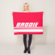 Bright red and white sports style blanket, reads: Brodie or personalise with the name of your choice. A perfect gift for a vibrant sporting fan, teen or child, for the car or when at sporting events. Uniquely designed by Sarah Trett for www.mylittleeden.com
