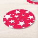 Red White Stars Elegant Christmas Template Round Paper Coaster