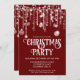 Red and white string lights Christmas party invitation with a cute whimsical fun for a festive holiday party.