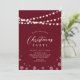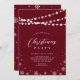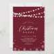 Celebrate the season with this modern holiday party invitation. This design features stylish custom text, snowflakes, and string lights. You can customise the text, font, and colours. Perfect for a dark red & white colour theme holiday dinner party, or corporate holiday party.
