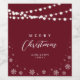 Red & White String Lights Snow Merry Christmas Wine Label
