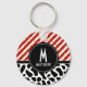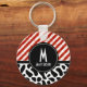 Red White Stripe Black Pattern Monogram Keychain is trendy and stylish to add your keys. Great for his or hers. Personalise it with your initial and name.