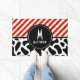 Red White Stripe Black White Pattern Monogram Personalise Doormat is trendy and stylish to use every day at home or in your office entrance. Also great gift for his or hers. Personalise it with your initial and name.