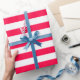 Red White Stripe Classic Christmas Template Trendy Wrapping Paper
