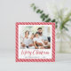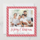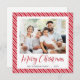Celebrate the holidays with this festive red and white striped Merry Christmas photo card! Featuring a modern candy cane border, elegant red script typography, and a favourite family photo, this holiday card is perfect for sharing joy with loved ones. Personalise with your family name and year. Ideal for this years Christmas season, this custom holiday card adds a personal touch to your season's greetings.
