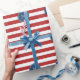 Red White Stripes Pattern, Navy Blue Monogram Wrapping Paper
