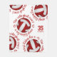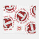 This cute volleyball themed fleece blanket features 5 randomly arranged red and white volleyballs with the text, "The volleyball court is my happy place" in red encircling each volleyball in a fun handwritten style typographic font, all on a white background - the volleyballs' red panels are blended with an artsy, girly floral pattern - her name and jersey number are customisable - by katz_d_zynes