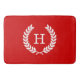Red White Wheat Laurel Wreath Initial Monogram Bath Mat