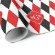 Red Wht Black Harlequin Red Quatrefoil 3 Monogram Wrapping Paper