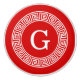 Red and White Greek Key Round Framed Initial Monogram